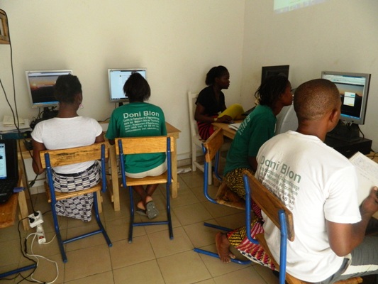 Ce samedi 25 mai 2013, une quinzaine d’élèves de Doni Blon, un centre de formation aux métiers du tourisme et de l’hôtellerie à Ségou, ont pris par à une formation aux notions d’Internet. Cette formation avait pour but d’apprendre aux apprenants, les notions d’Internet en général et les notions de site web, de blog et de réseaux sociaux en particulier. Il s’agissait également de leur apprendre les modes de recherche sur l’encyclopédie numérique Afripédia, Wikipédia consultable hors ligne.